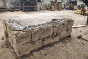 Elemente din chirpici prinse cu mortar.