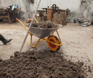În final, materialul obținut este lăsat în repaos 20-30 minute. Se spune că ”lutul se lasă să se odihnească”- practic, masa de lut și paie trage apă, inclusiv lutul de la baza grămezii care nu a fost suficient de umed.